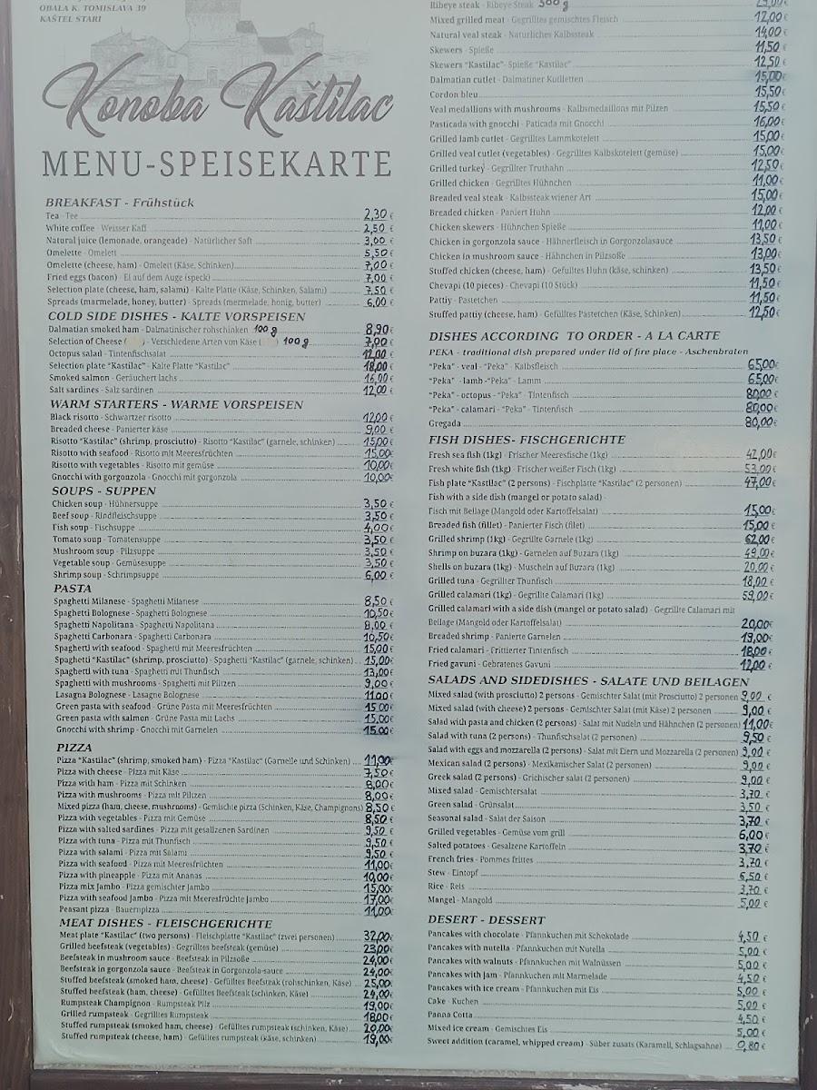 Welcome to Konoba Kastilac, a culinary gem nestled along the beautiful waterfront of Kaštel Stari, Croatia. This brand is revered for its commitment to quality and freshness, as evidenced by a glowing customer base that keeps returning for more.
